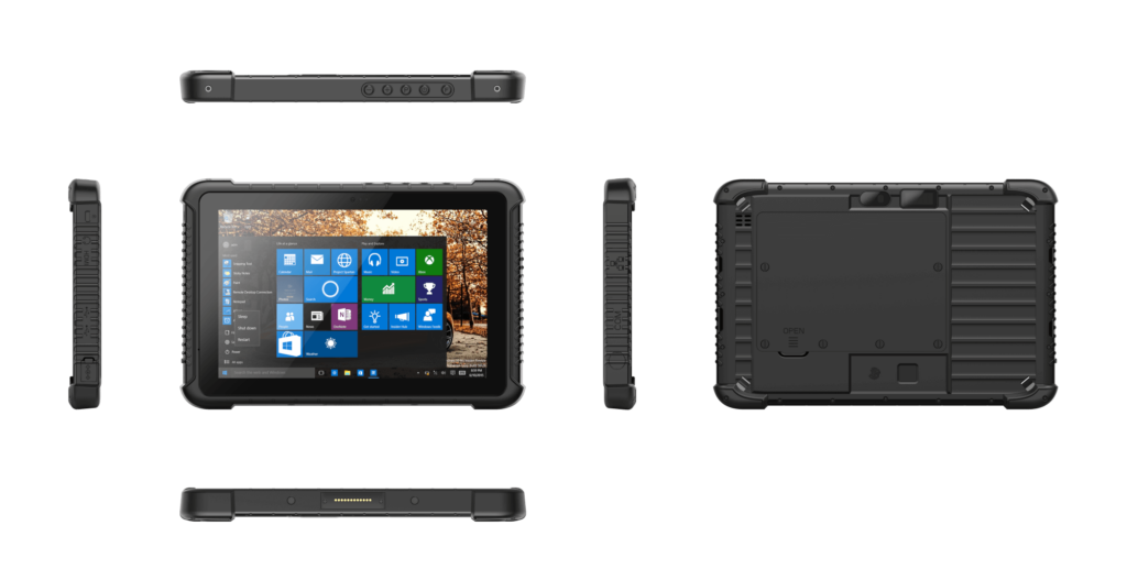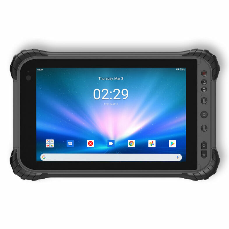 Mobile workforce 8″ inch fully rugged Android 12 tablet. Lightweight, sunlight readable, easy access buttons, 8,000 mAh swappable battery, GPS, 5G LTE, NFC. Rated MIL-STD 810-G to withstand a drop of 4ft and continued vibration. Ingress IP68 certified dust, dirt and waterproof, make this rugged tablet the essential productivity tool for POS, business or personal computer use.